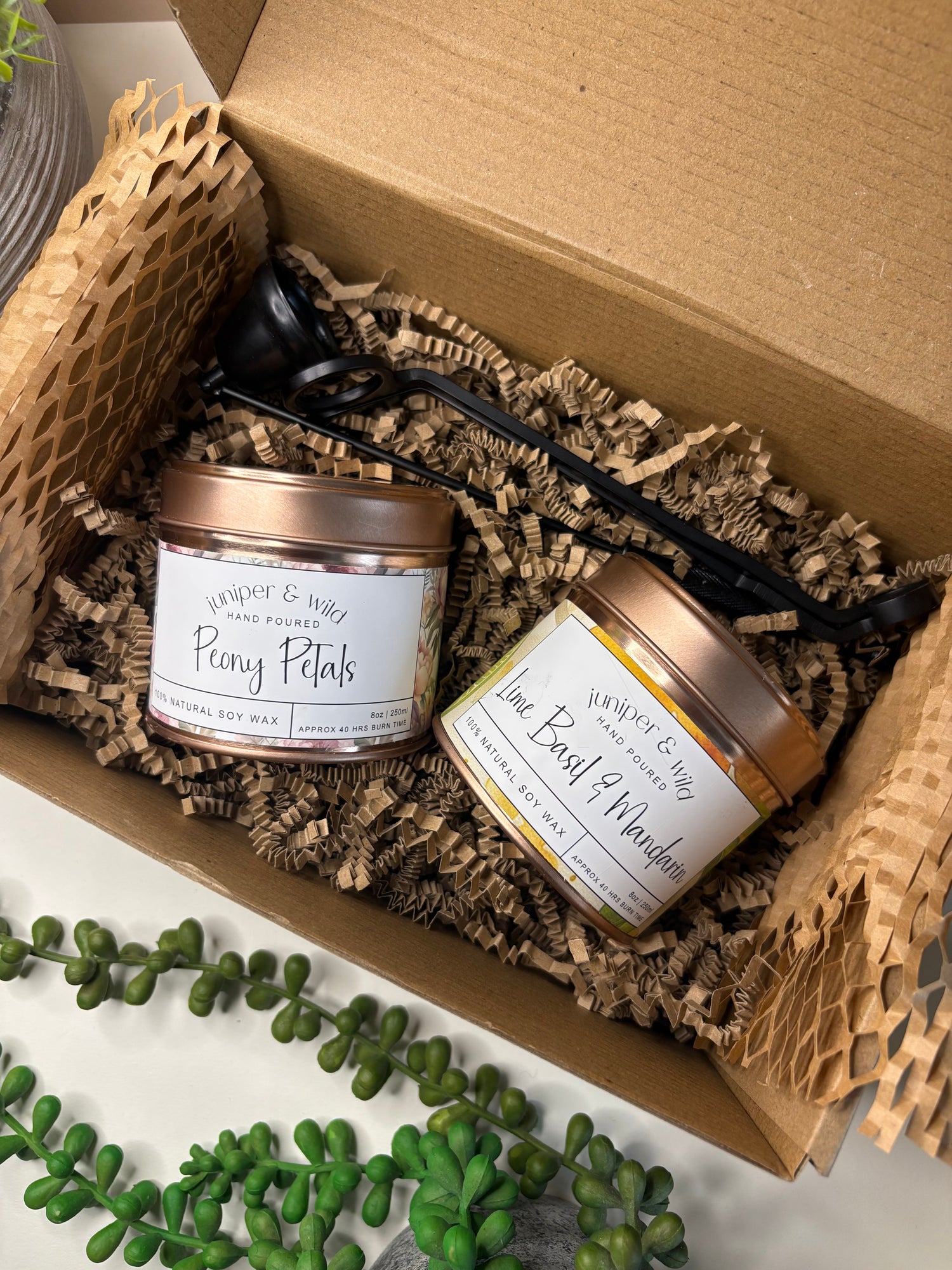 Clean-burning and beautifully scented, our soy candle tins are crafted for cosy moments wherever you are. Each one is hand-poured and presented in a stylish, travel-friendly tin — simple, sustainable, and effortlessly giftable.
