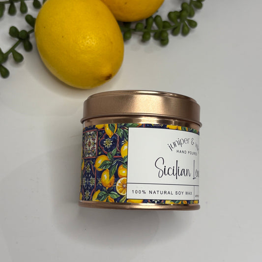 Hand Poured Soy Wax Rose Gold Candle Tin - Sicilian Lemon