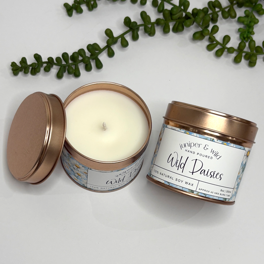 Hand Poured Soy Wax Rose Gold Candle Tin - Wild Daisies