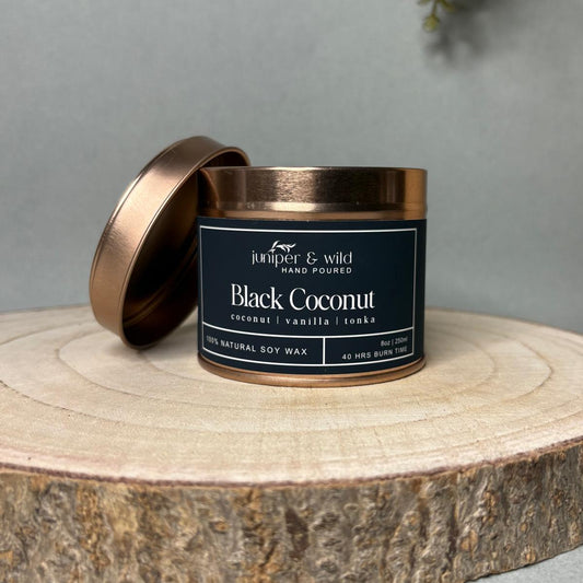 Black Coconut Soy Candle Tin – 250ml Hand-Poured Vegan Candle