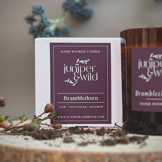 Bramblethorn Soy Candle - Amber Glass Jar Hand-Poured Natural Candle | Unearthed Collection