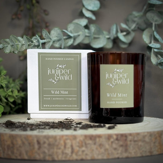 Wild Mint Soy Candle - Amber Glass Jar Hand-Poured Natural Candle | Unearthed Collection