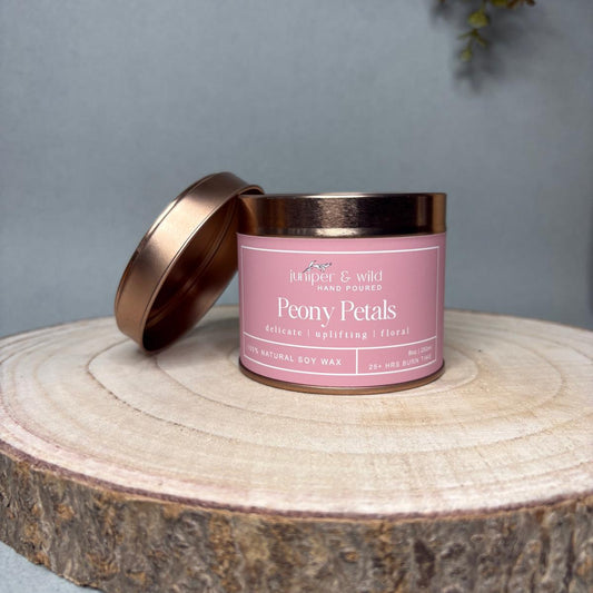 Peony Petals Soy Candle Tin – 250ml Hand-Poured Vegan Candle