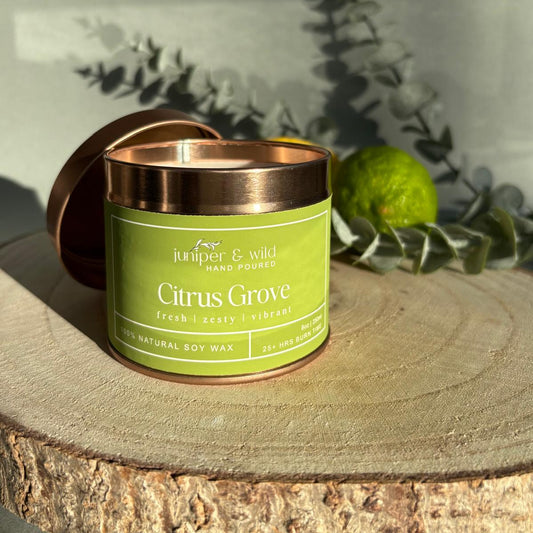 Citrus Grove Soy Candle Tin – 250ml Hand-Poured Vegan Candle