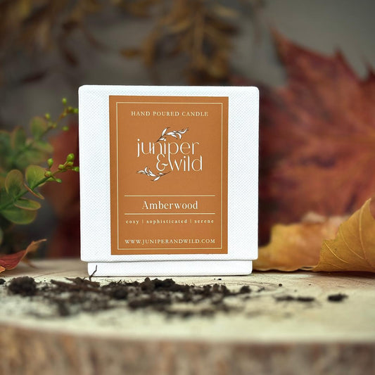 Amberwood Soy Candle - Amber Glass Jar Hand-Poured Natural Candle | Unearthed Collection