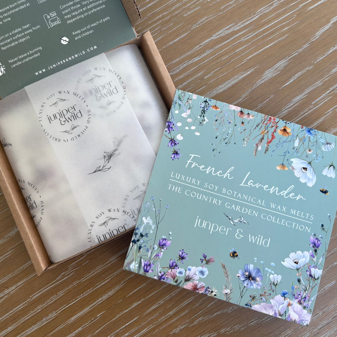 This box of 9 melts has been lovingly created using the finest natural soy wax for a clean, long lasting burn and optimum scent throw and infused with our carefully selected French Lavender fragrance oil for the perfect melt every time.