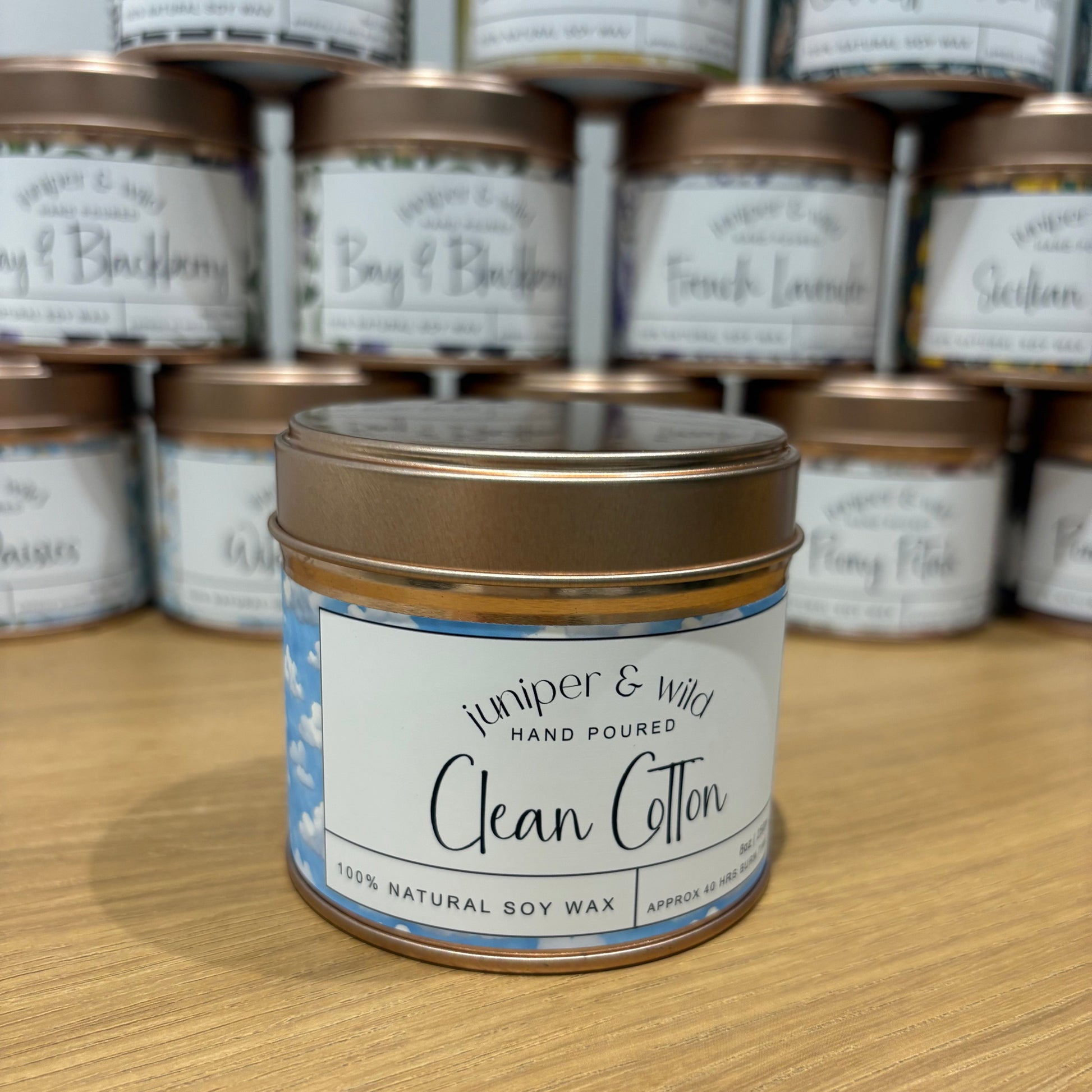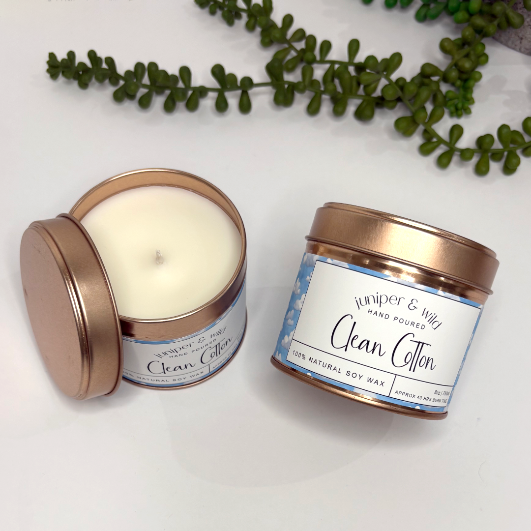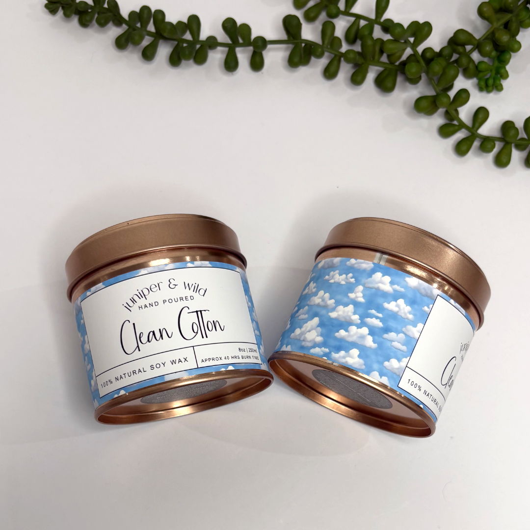 Hand Poured Soy Wax Rose Gold Candle Tin - Clean Cotton