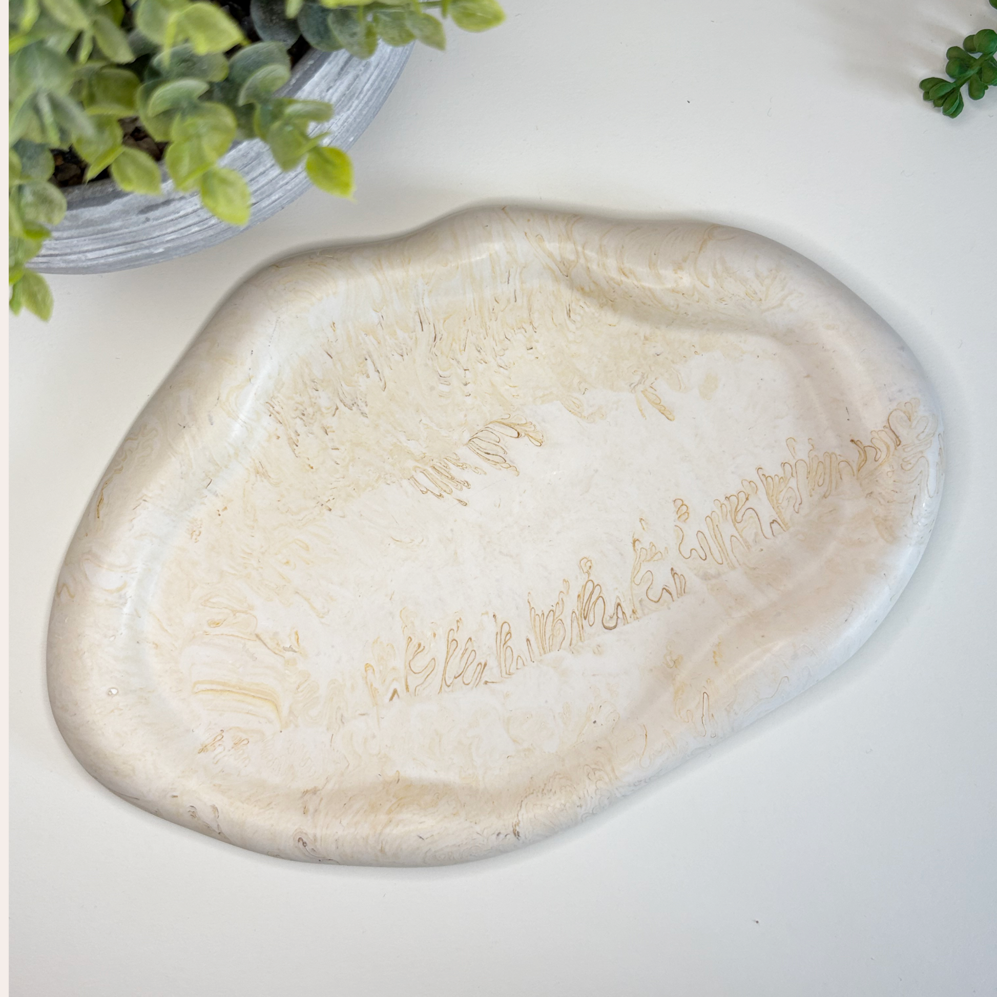 The Cloud Tray is a modern curve tray that works well in any room. It comes in a natural off white colour or choose from a choice of marble effect for the perfect look. It's ideal for organising small items of jewellery, using as a large coaster or popping underneath a candle!